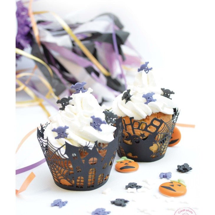 Ce kit contient 24 caissettes de présentation en papier apte au contact alimentaire et décorées de différents motifs sorcier. Dimensions : 5,2 x 7,5 x 3,4 cm.
