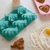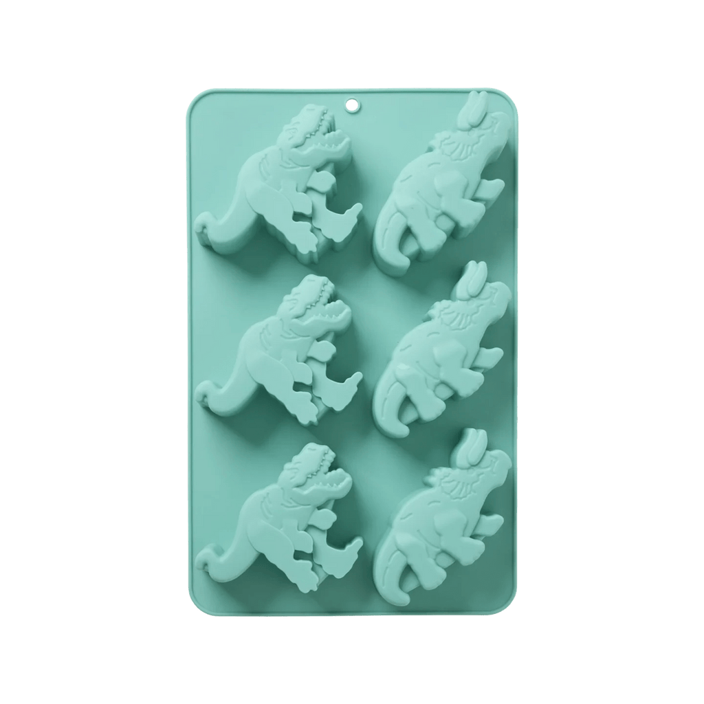 Moule de cuisson en silicone avec 6 dinosaures, vert menthe.