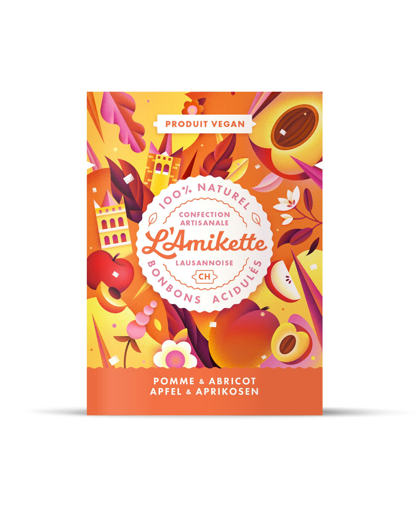- POMME ABRICOT (Ingrédients : pomme (CH), abricot du Valais (CH), sucre (CH), acide citrique)