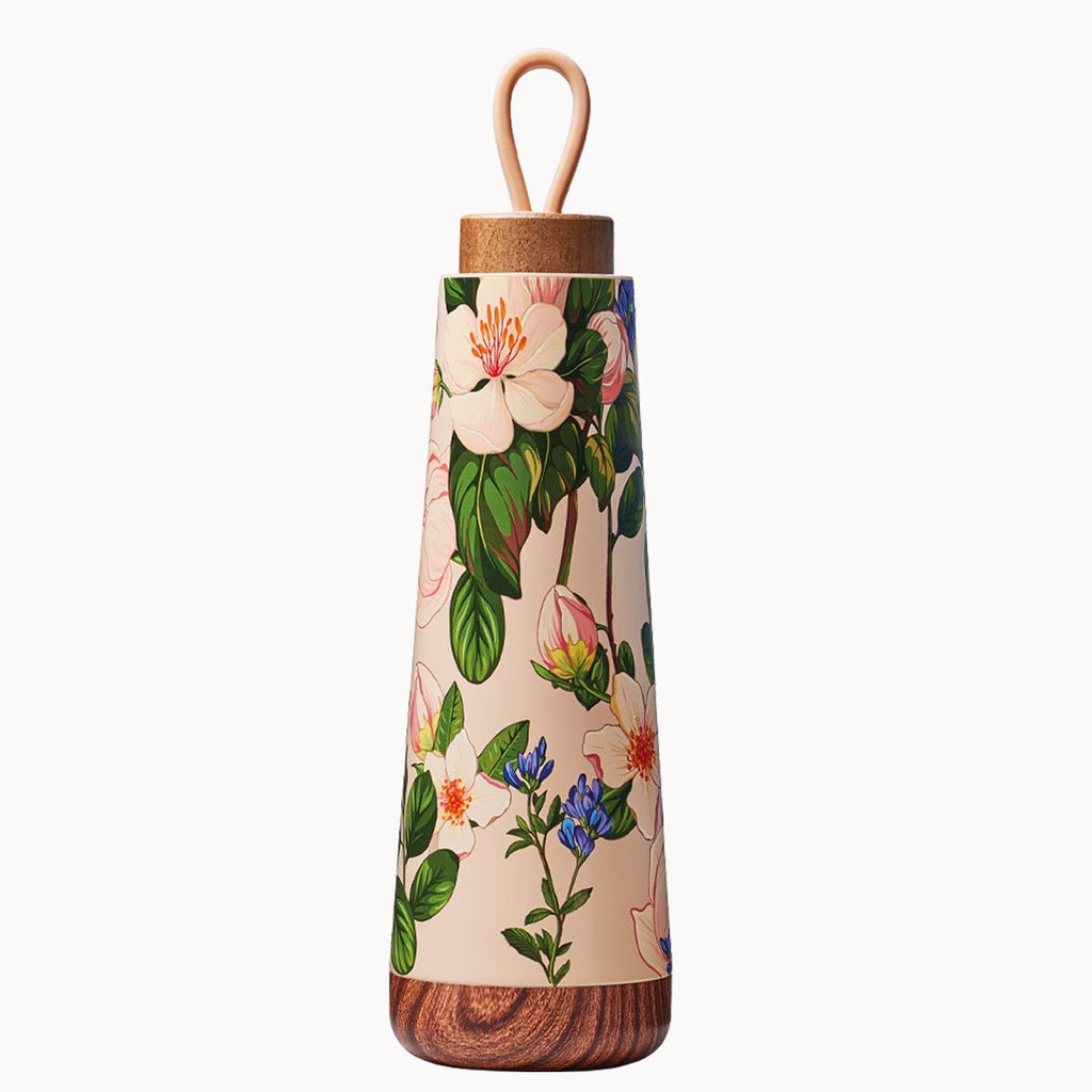 Thermos Bioloco en acier, tient les boissons chaudes jusqu'à 18 heures et froides jusqu'à 12 heures. Élégant, simple, avec couvercle en bois.