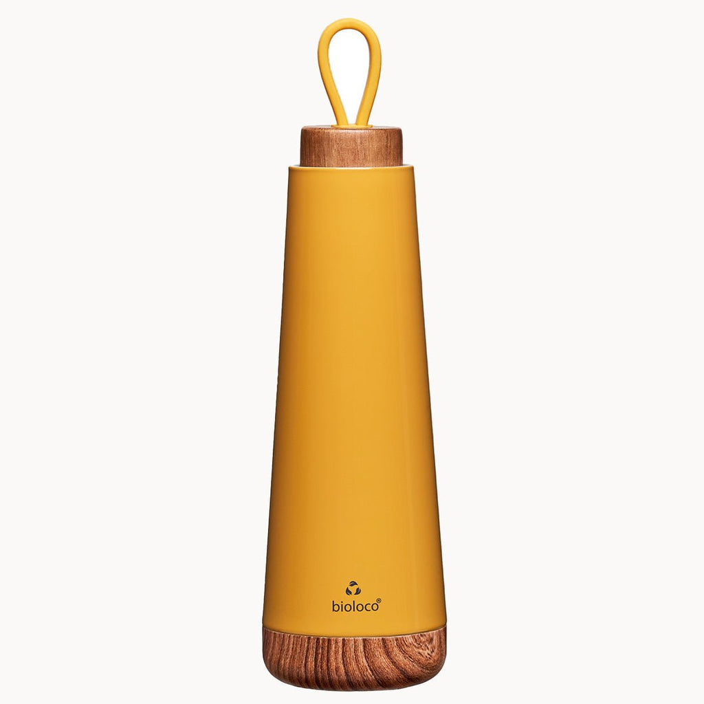 Thermos Bioloco en acier, tient les boissons chaudes jusqu'à 18 heures et froides jusqu'à 12 heures. Élégant, simple, avec couvercle en bois.