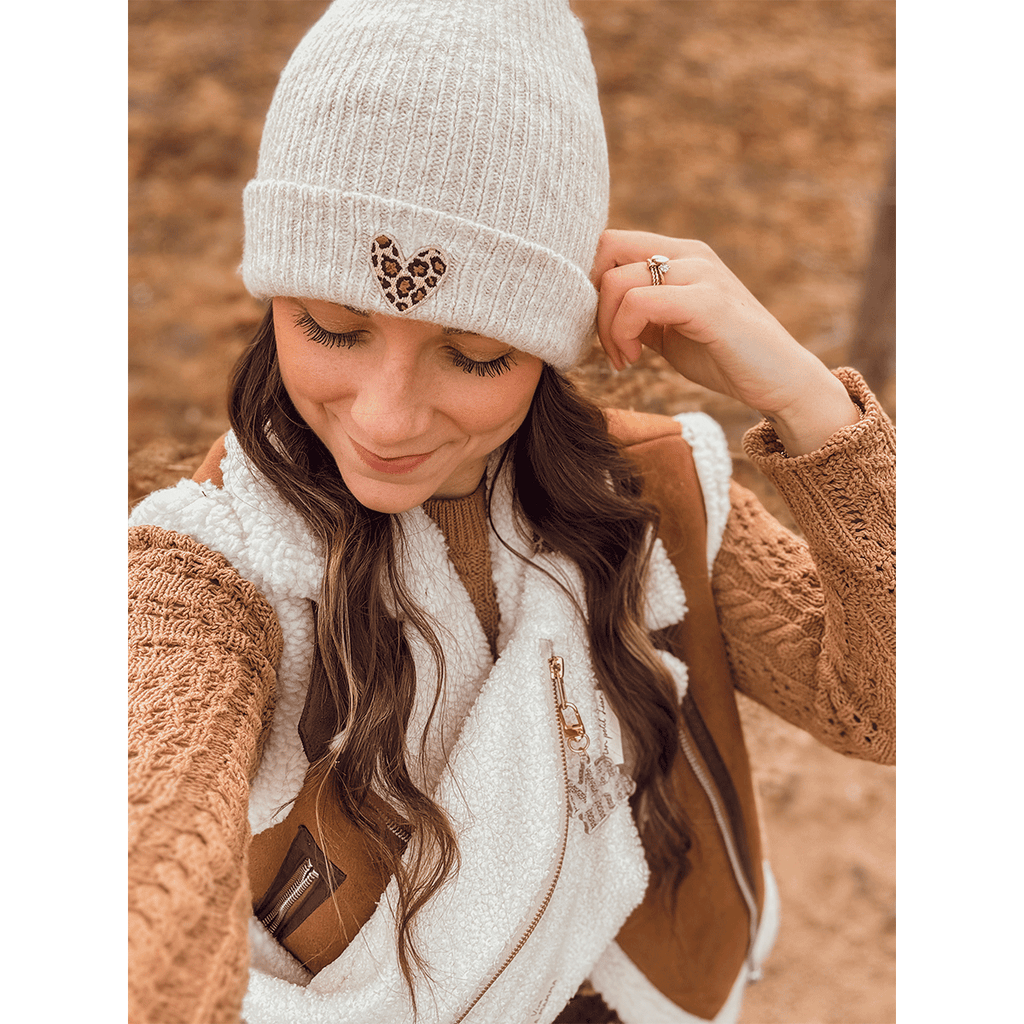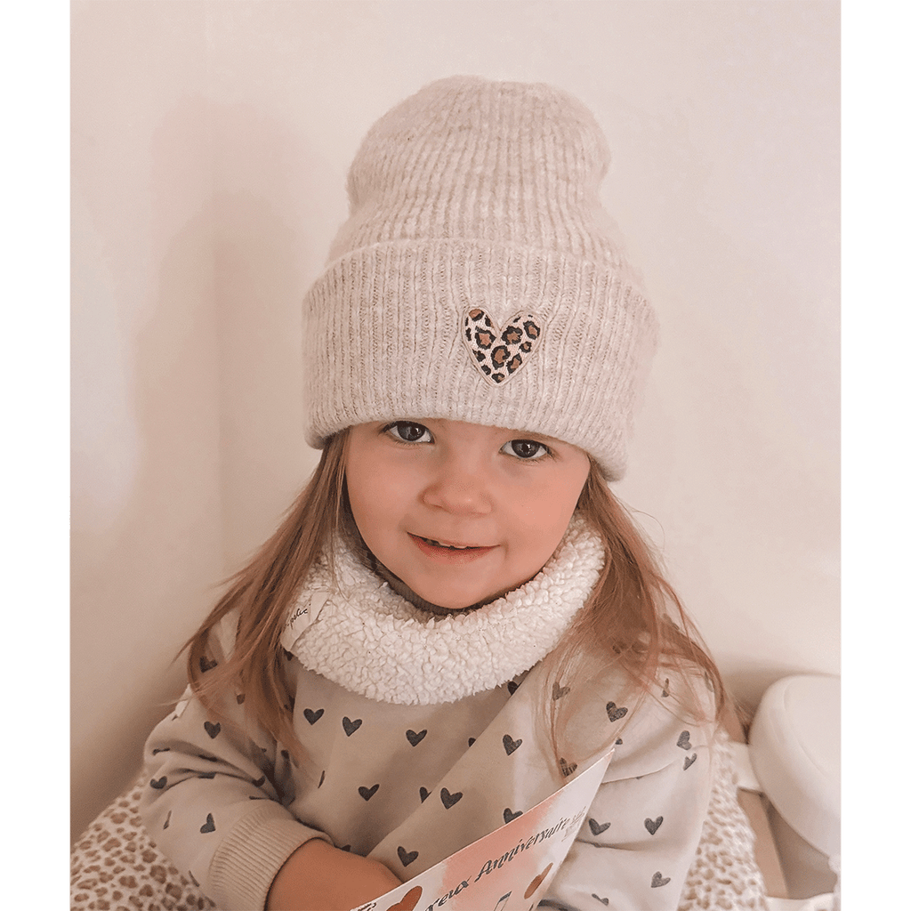Bonnet beige coeur léopard