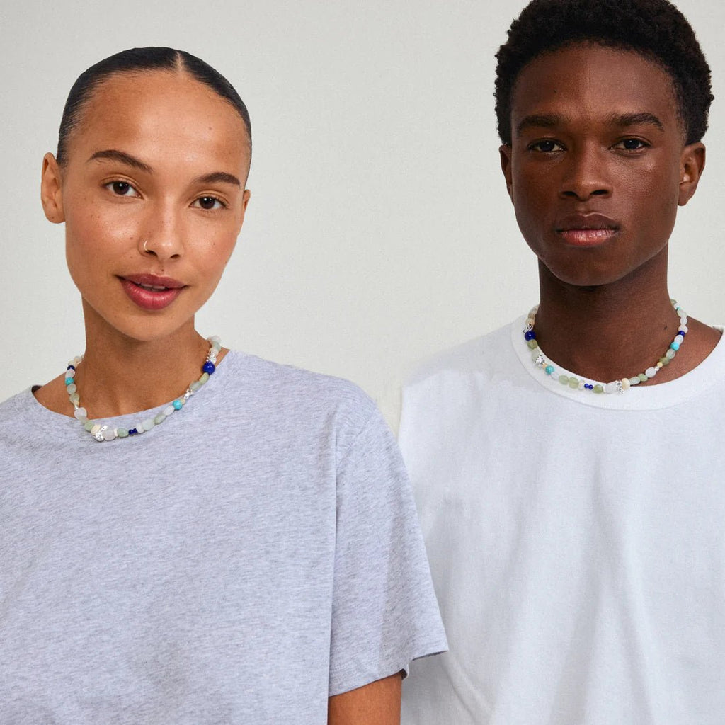 - Collier plaqué argent avec un mélange de pierres et de perles