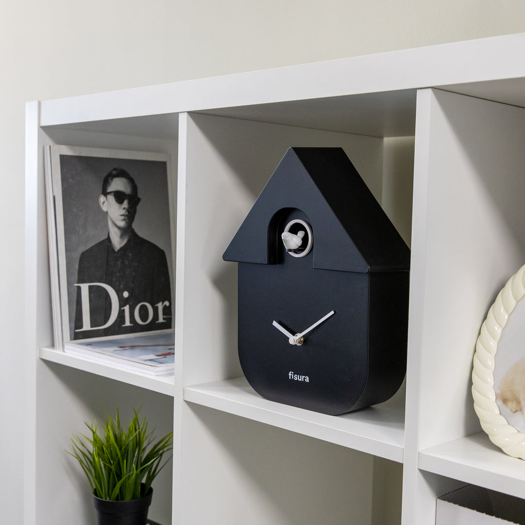 Saviez-vous que la première horloge à coucou connue a été fabriquée en 1629 ? Cette horloge emblématique fait partie de notre vie depuis des siècles. FISURA l'a réinventée pour les personnes qui recherchent un design plus moderne et plus coloré. Offrez-la à vos amis et à votre famille et laissez le chant de l'oiseau vous donner le sourire toutes les heures. Le coucou chante automatiquement pendant 16 heures et se tait au bout de 8 heures. Mais comment le faire taire ? Si vous souhaitez que votre horloge soit silencieuse la nuit, vous devez insérer les piles pour la première fois en sachant qu'elle ne se taira que 16 heures plus tard et recommencera à chanter 8 heures plus tard. 3 piles AA (non incluses). Utilisable comme horloge murale ou de table. Avec mouvement d'horloge silencieux.