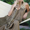 Parfait pour avoir les mains libres tout en faisant autres choses, nos chaînes peuvent être portées en bandoulière ou en collier.