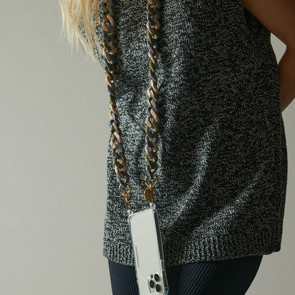 Nos chaînes donneront une touche chic à vos tenues. Vous pouvez retirer la chaîne facilement et à tout moment, et l'échanger selon vos envies et vos tenues. Vous pouvez adapter votre coque avec les différentes chaînes que nous proposons.