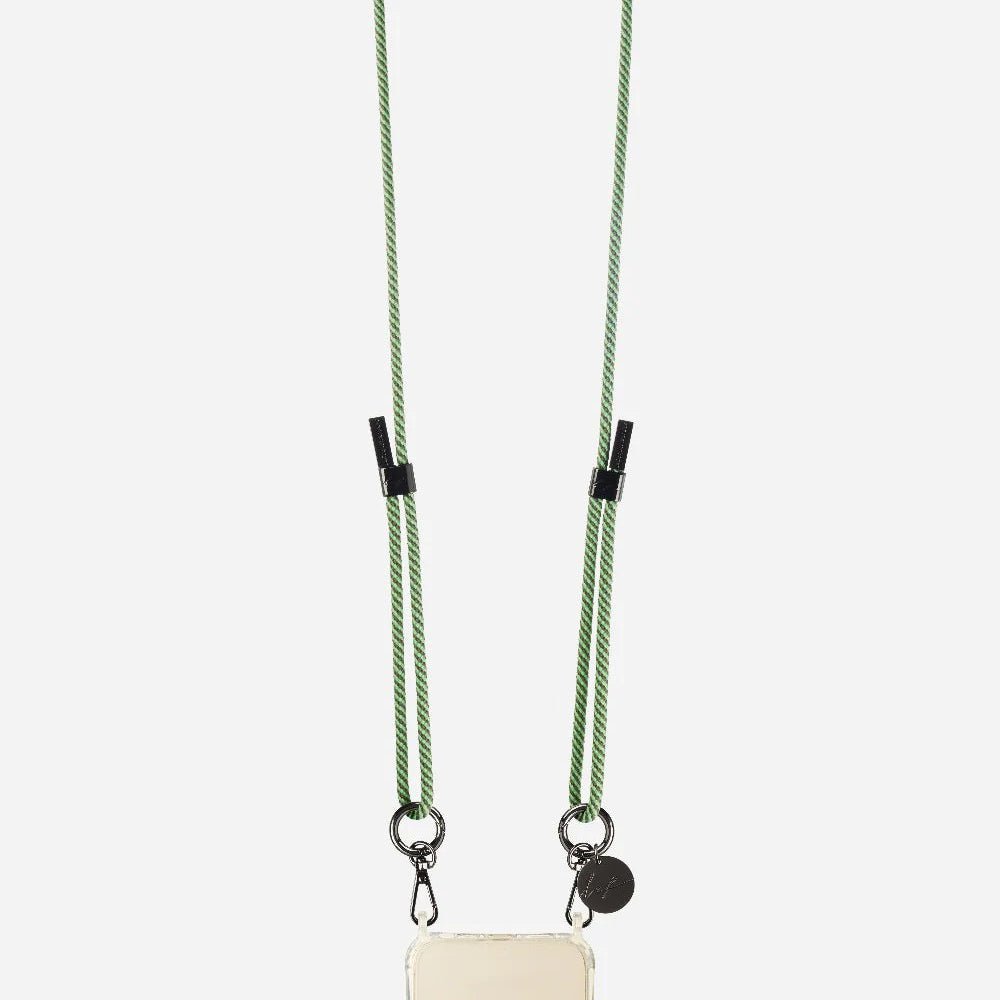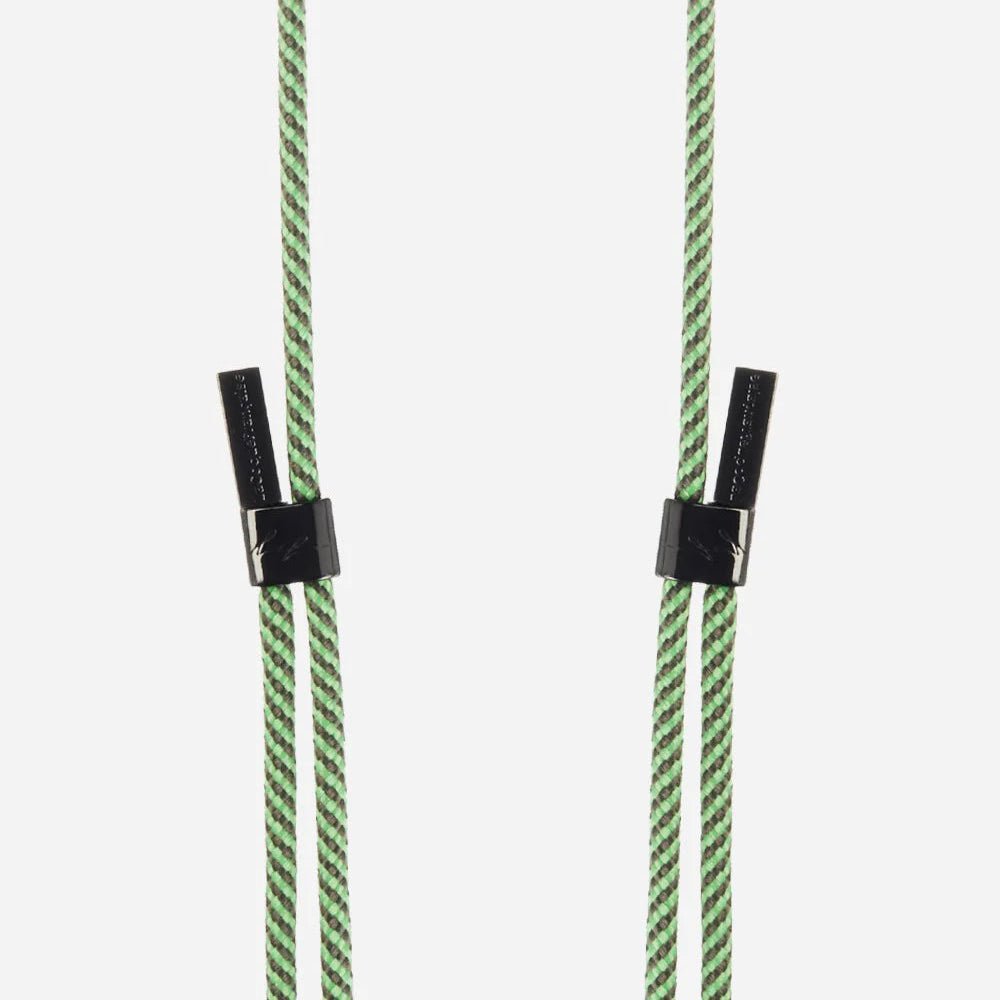 Liam est en Coton tressé gris et vert, avec mousquetons noirs métallisés