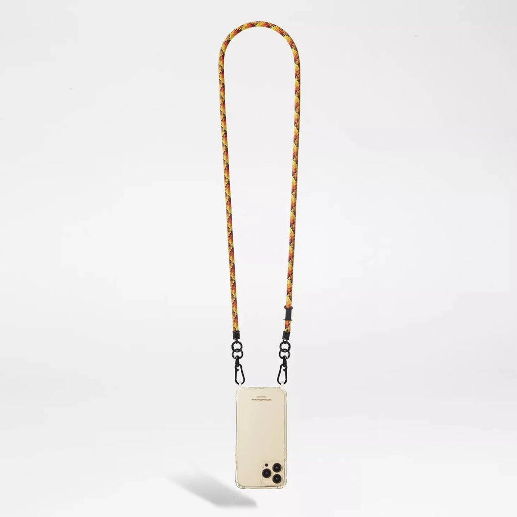 La lanière cordon Swann est en coton tressée avec un mousquetons noir metalisé, coloris jaune et orange