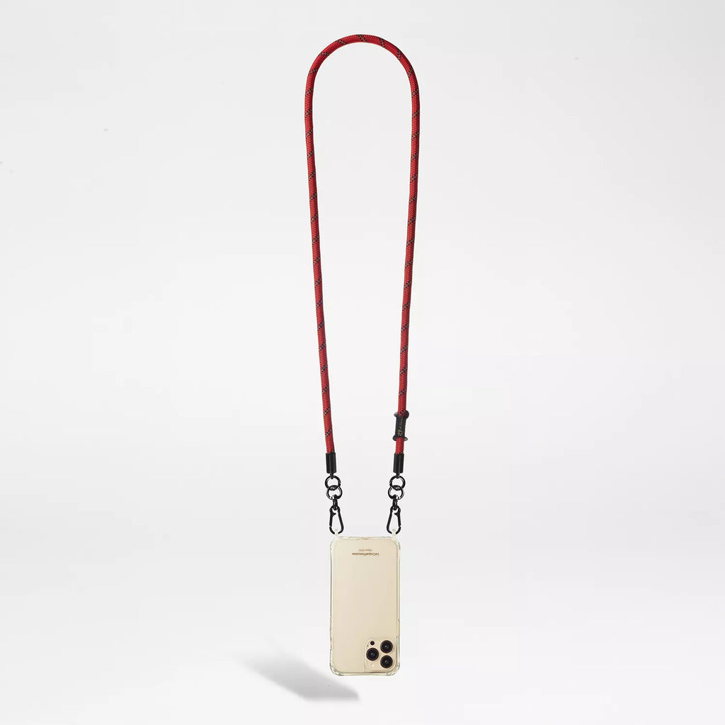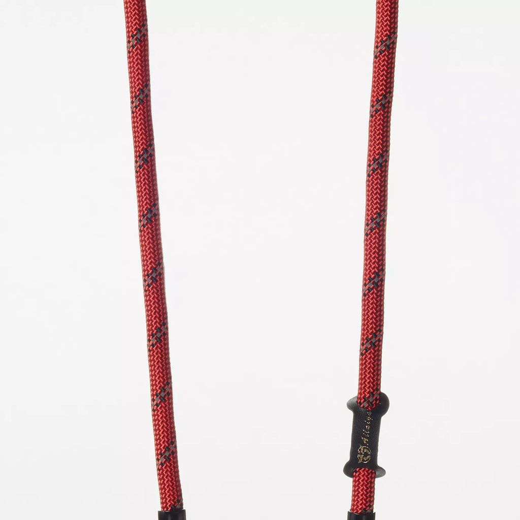La lanière cordon Swann est en coton tressée avec un mousquetons noir metalisé, coloris rouge et noir.