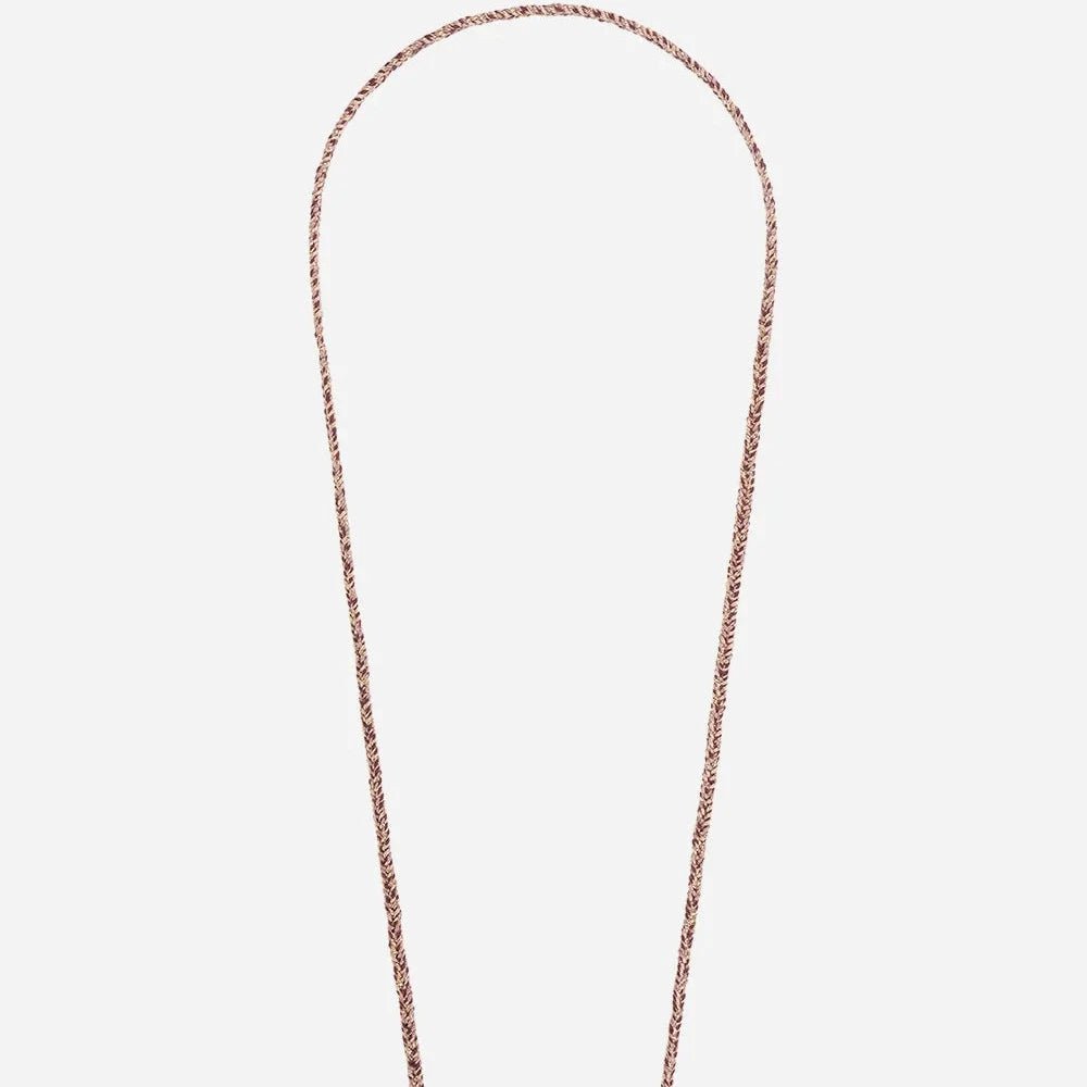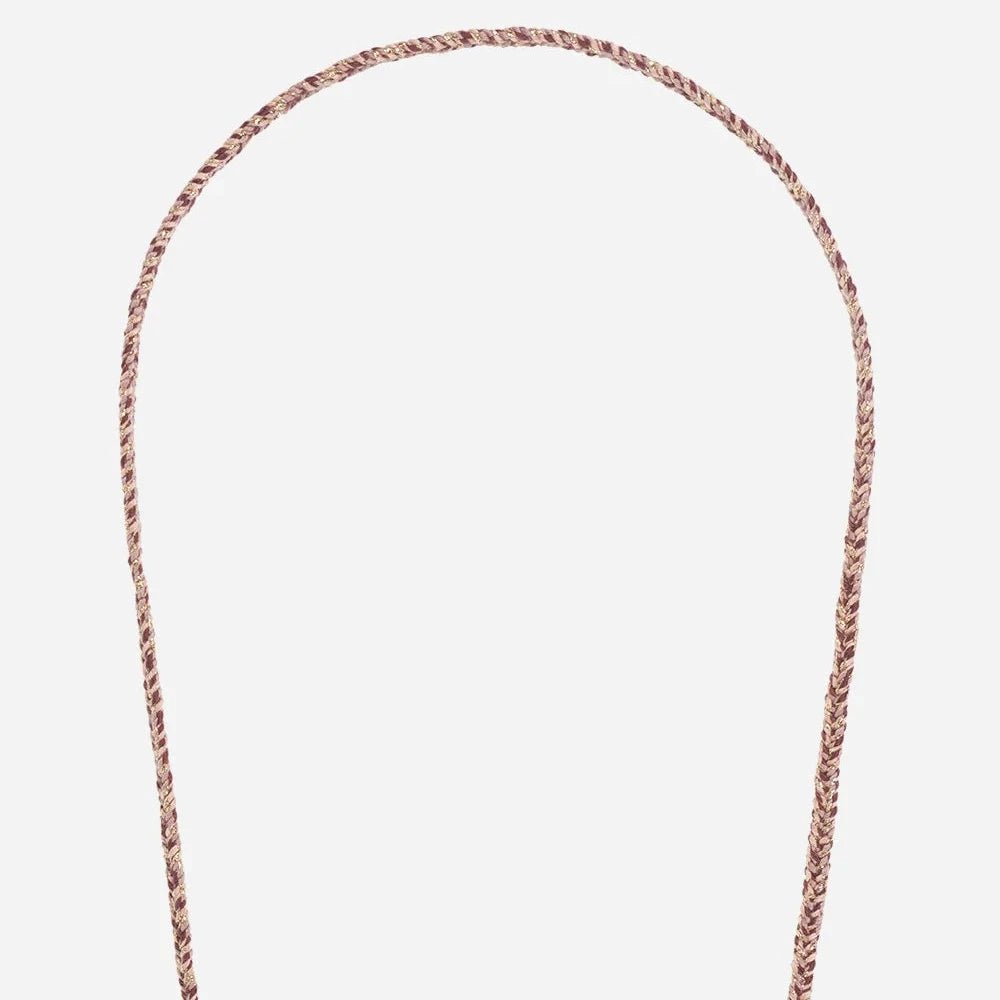 Vanessa, en fil de coton beige tressé à la main, longue de 120 cm, se clipse sur nos coques à anneaux ou notre adaptateur avec ses mousquetons dorés. Elle a été conçue dans nos ateliers marseillais et fabriquée à la main