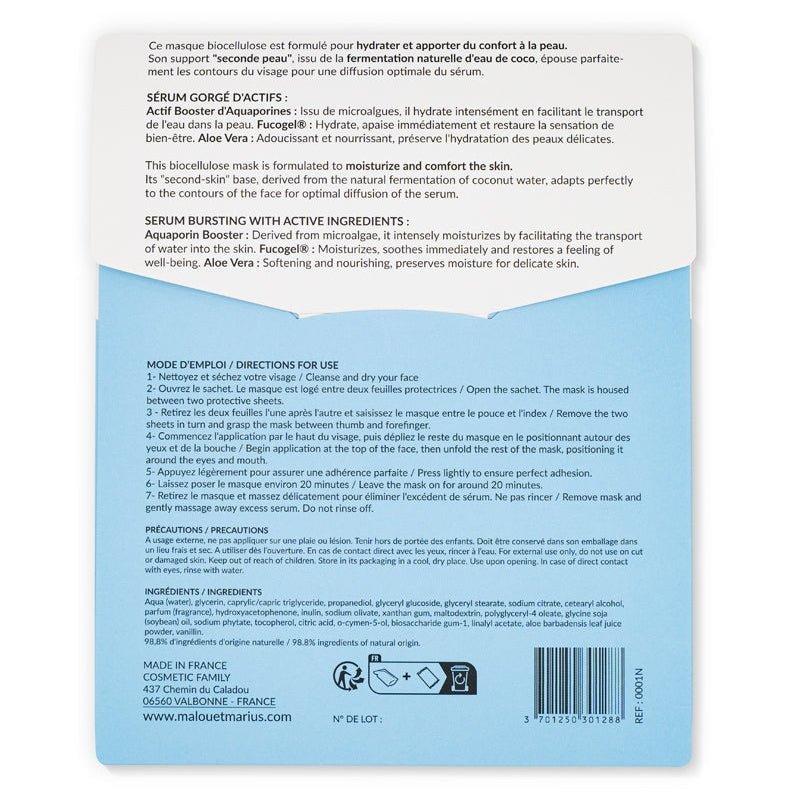 Ce masque en bio-cellulose (obtenue par la fermentation naturelle d’eau de coco) apporte une sensation de seconde peau, qui adhère parfaitement à la forme du visage.