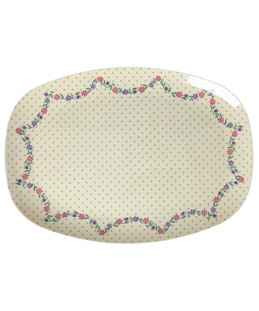 Notre assiette rectangulaire en imprimé "Toile de Rice".