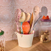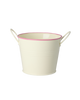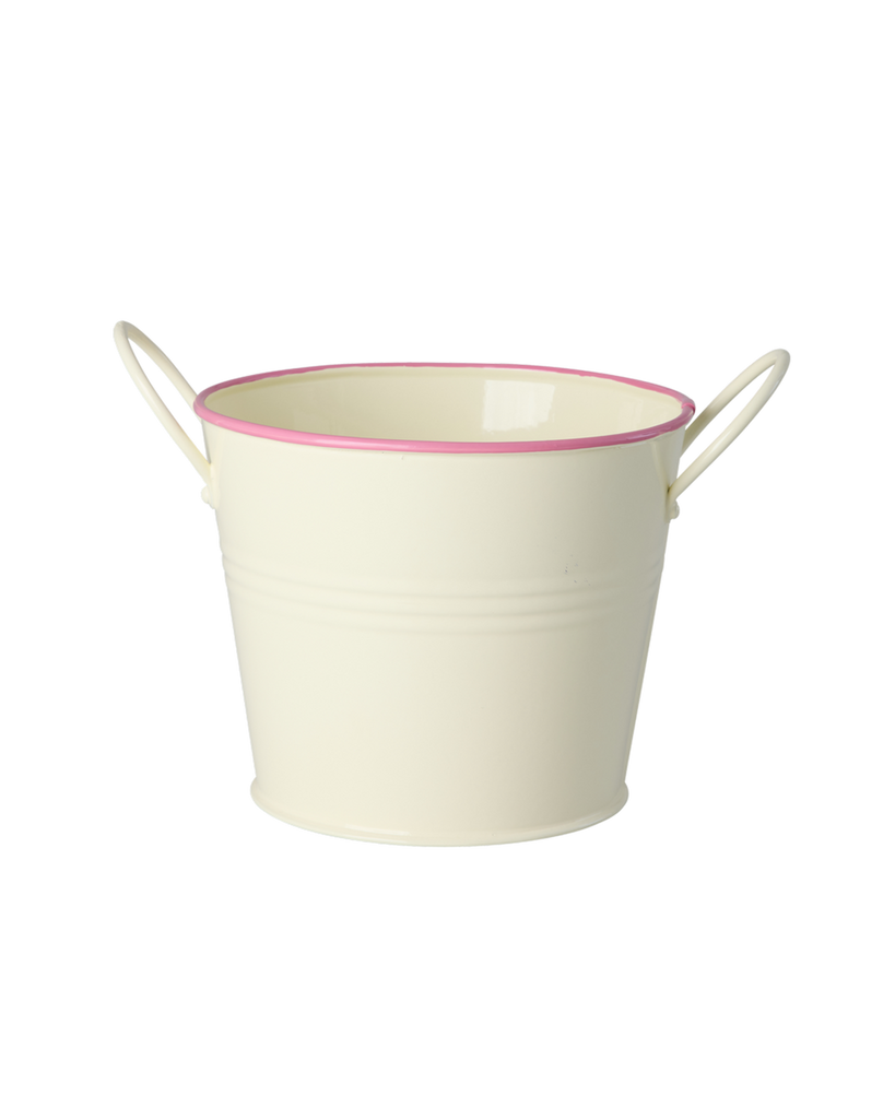 Restez organisé avec ce petit seau de rangement en métal d'une jolie couleur crème et d'une garniture rose.