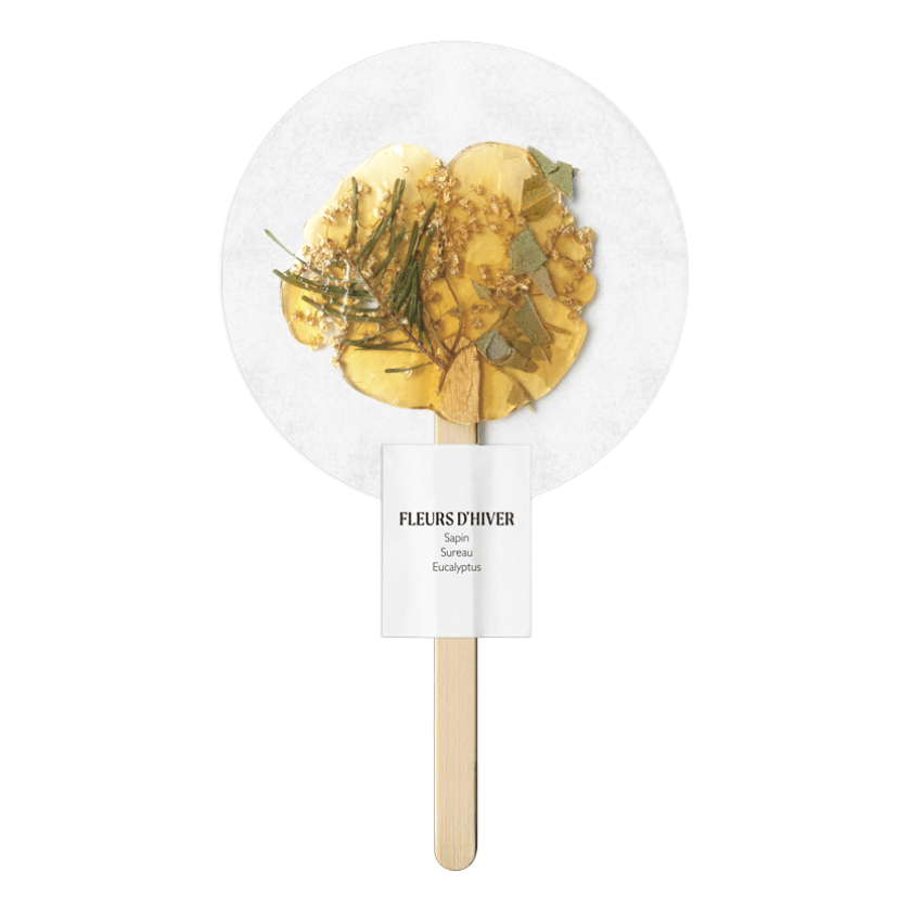 Chacune des tisanes est présentée sur un bâtonnet en bois, prête à être infusée. Le miel fond, les fleurs s’infusent et s’épanouissent naturellement dans l’eau chaude pour accompagner la dégustation d’un moment de bien-être.