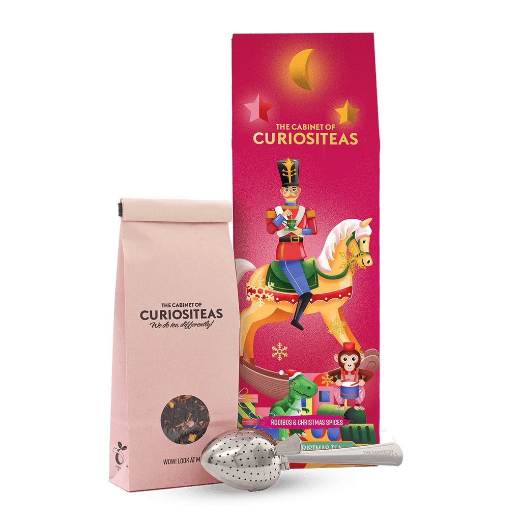 Ce thé de Noël ultime, fait avec du rooibos et des épices de Noël, a des effets magiques : il vous mettra instantanément dans l'esprit de Noël ! Dans ce coffret cadeau, vous trouverez non seulement un délicieux thé en vrac (assez pour 25 tasses), mais aussi notre infuseur de thé pratique !