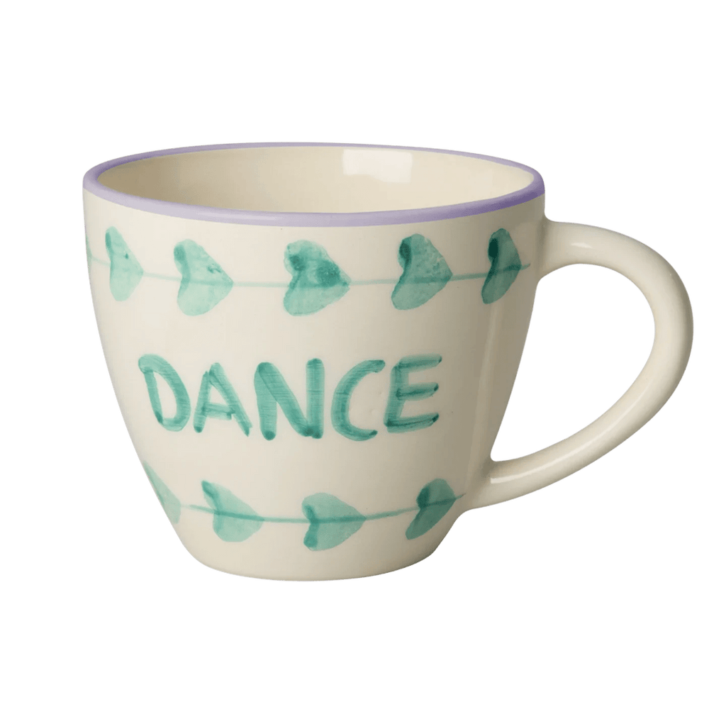 Savourez une délicieuse pause thé avec cette jolie tasse décorée de Dance et de coeurs verts. Cette tasse a été peinte à la main artisanalement au Portugal par des femmes extraordinaires. Vous pouvez même retrouver de petites traces du pinceau qui l’a décorée. Chacune de ces tasses est donc vraiment unique. Quel charme !