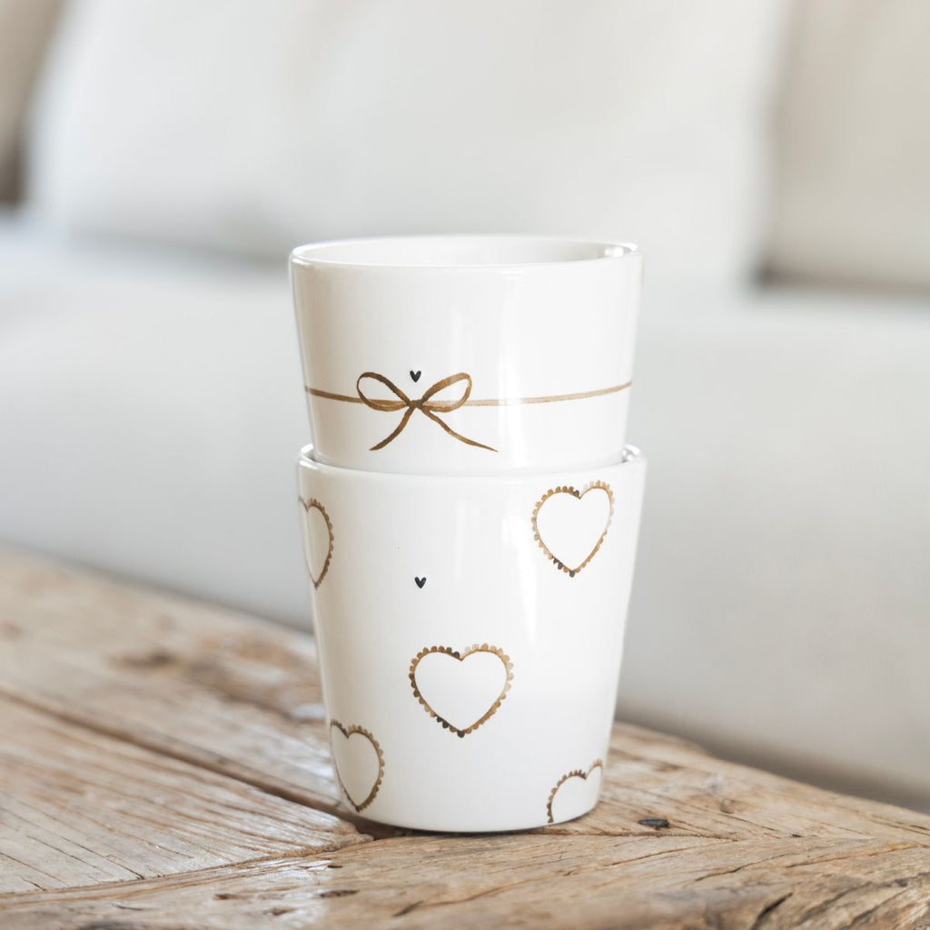 Verre à café ou à thé " Coeurs marrons"