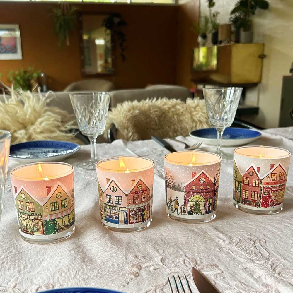 Nos bougies en verre sont illustrées par de petits villages d'hiver et remplies d'esprit de Noël, de souvenirs...