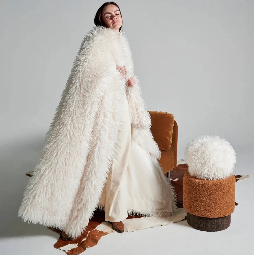 Volumineux, lumineux, irrésistiblement doux : le plaid fourrure blanc Douchka est plus qu’un accessoire, c’est une expérience sensorielle et visuelle.