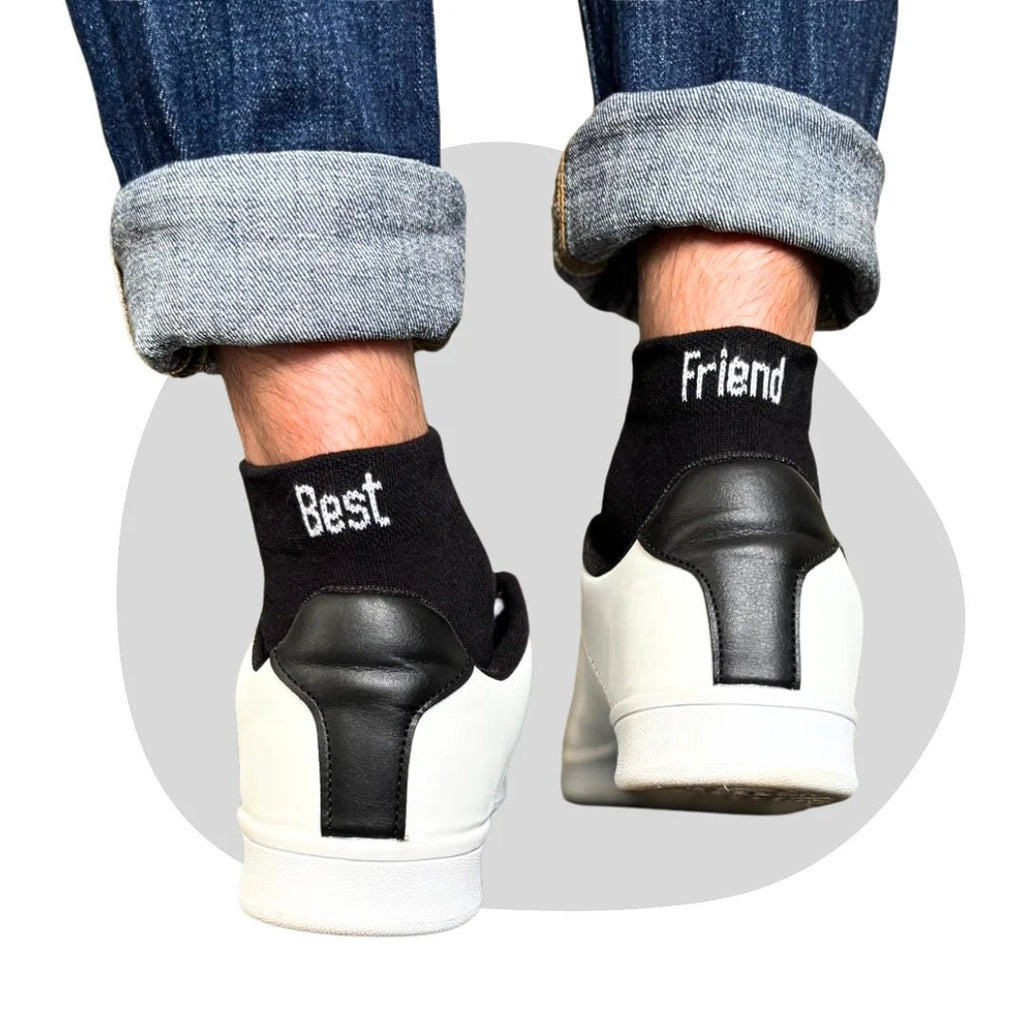 Affiche votre lien unique avec les chaussettes Best Friend. Dépareillées, elles portent “Best” sur une chaussette et “Friend” sur l’autre : le cadeau parfait pour ta/ton BFF, version look & love.