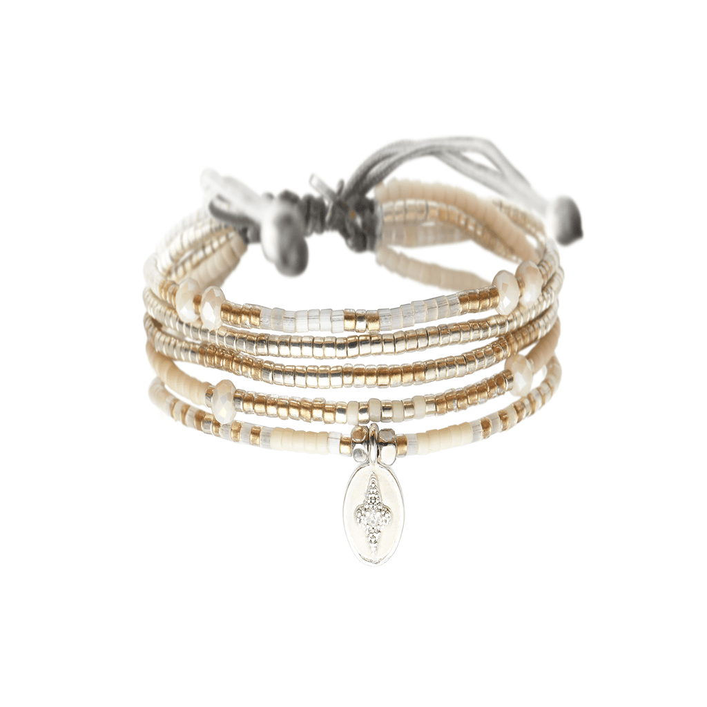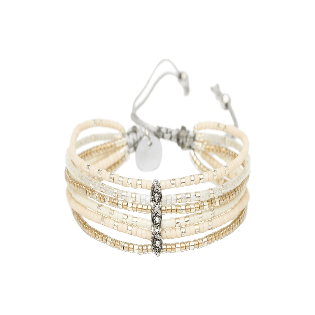 Composition : Perles de Miyuki argentées et cristaux