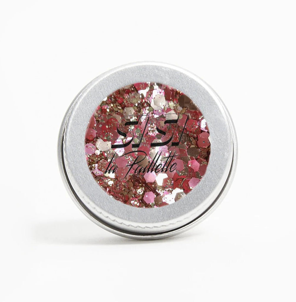 Un mélange de paillettes à base de plantes Vegas Bébé aux couleurs or rose et rouge, avec des pointes de doré, argenté et rose, et de toutes les tailles pour toujours plus de brillance !